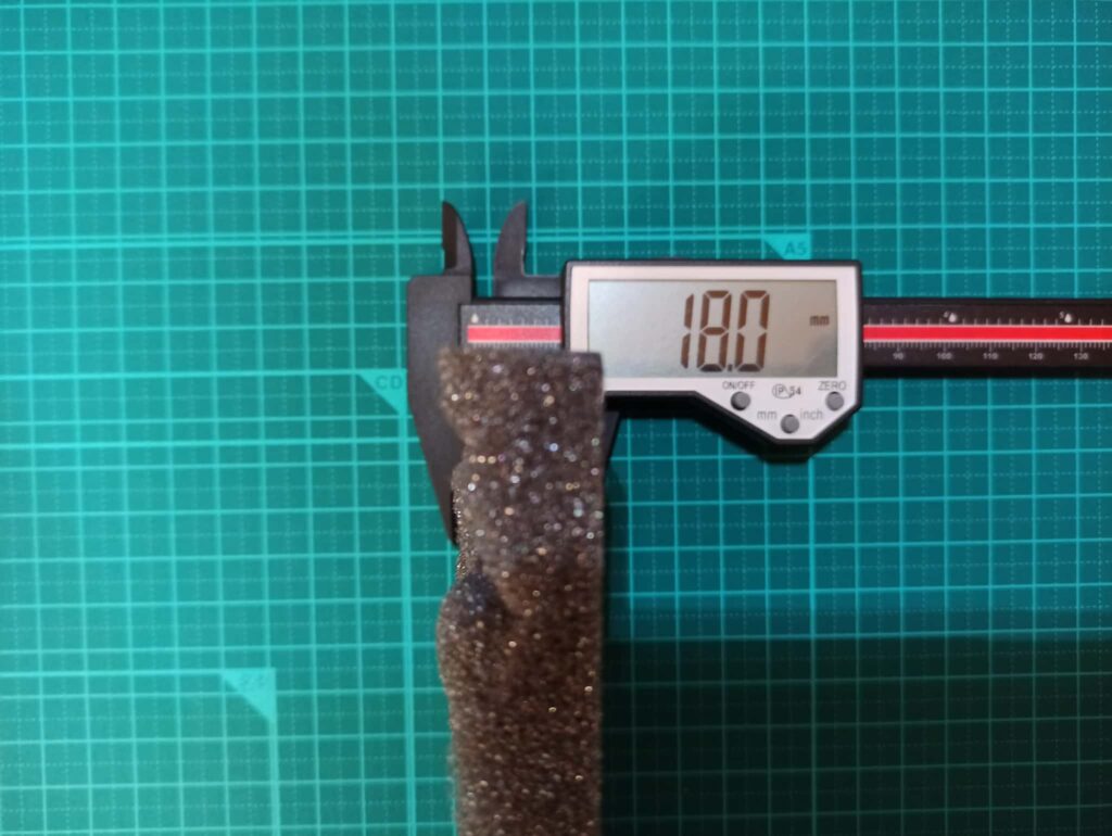 モンベル アウトドア"タフ"ケースのクッションの計測。