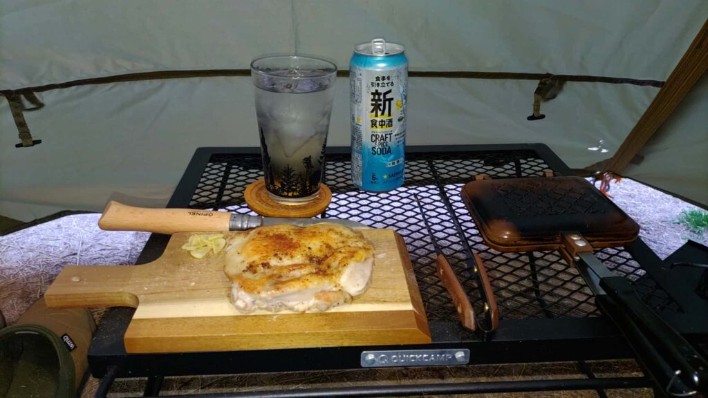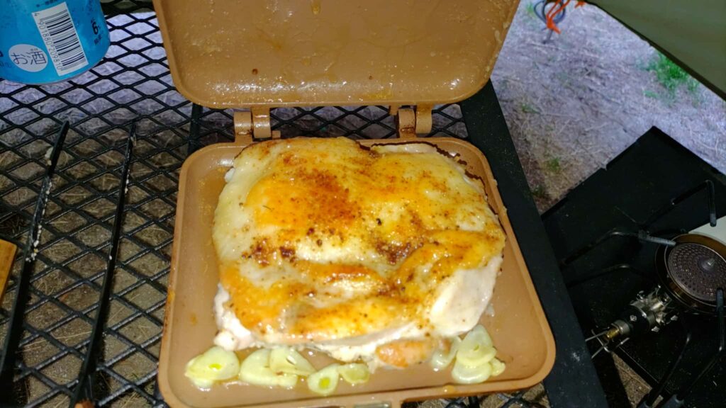 お手軽フライドチキンは、バーナーとホットサンドメーカーさえあれば簡単に作れるキャンプ飯です。