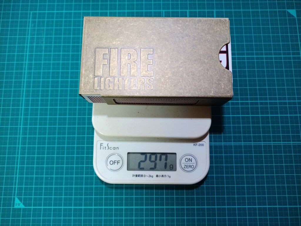 スリーブケースのみの重量と、ファイヤーライター入りスリーブケースの重量。